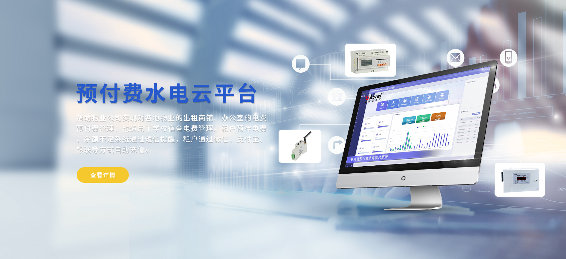 安科瑞提供的解決方案包括Acrel-EIoT能源物聯網云平臺變電所運維云平臺、安全用電管理云平臺、環保用電監管云平臺智慧消防云平臺、能源管理云平臺、工業企業能源管控平臺、遠程預付費云平臺、餐飲油煙監管云平臺、電動汽車/電瓶車充電樁收費管理云平臺、電力監控/無線測溫系統、電能質量治理系統、電氣火災監控系統、消防設備電源監控系統防火門監控系統應急照明和疏散指示系統、智能照明控制系統、醫用隔離電源絕緣監測系統等,幫助用戶實現能源智能化、可視化、精細化管理,提高用能效率和用能安全,為企業節能降耗和實現能源數字化建設提供數據服務。